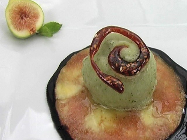Оригинальный десерт навсегда запомнится вашим гостям.Состав:коричневый сахар — 2 чайные ложки;базиликовое мороженое — 100 гр;бальзамический уксус — 1/4 чашки;инжир — 4 штуки.